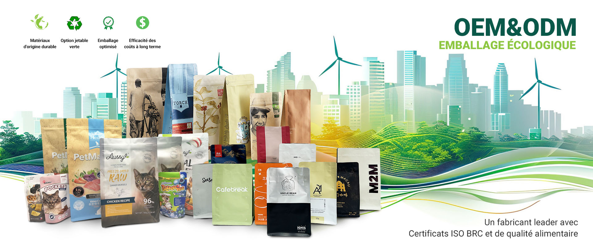 Nous proposons une gamme complète de solutions d'emballage pour différents segments de marché, tels que des sacs zip, des sacs à fond plat, des sachets à fond carré, des sacs en papier kraft, des sacs rétorte, des sacs sous vide, des sacs à gousset, des sacs à bec verseur, des sacs pour masques faciaux, des sacs pour aliments pour animaux de compagnie, des sacs pour cosmétiques, des films en rouleau, des sacs pour café, des sacs pour produits d'entretien, des sacs en aluminium, etc.